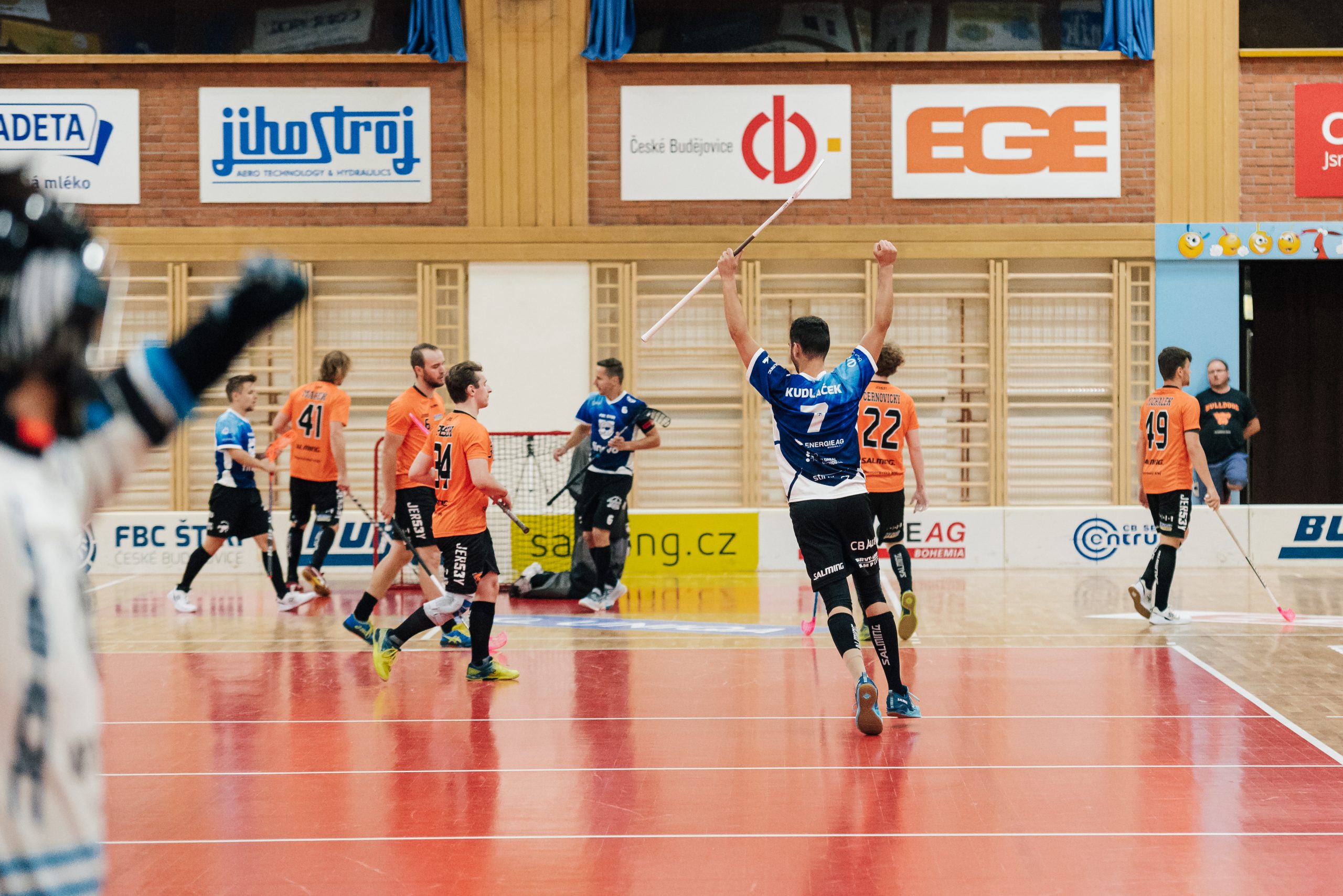 Od prvních minut zápasu se hrál aktivní florbal. Ve třetí minutě využili domácí závaru před svatyní Macka a ujali se vedení. Po necelých dvou minutách využil standartní situaci Hanák a srovnal vývoj zápasu. V polovině třetiny dostali Jihočeši šanci na obrat v podobě přesilové hry. Nabídnutou šanci nezužitkovali. Domácí ubráněné oslabení dostalo do pohody a z rychlého protiútoku přidali druhý gól. V 16. minutě diváci sledovali další utrápenou přesilovku Štírů. I tentokrát krátce po uplynutí trestu vsítili domácí gól a dostali se do vedení 3:1.