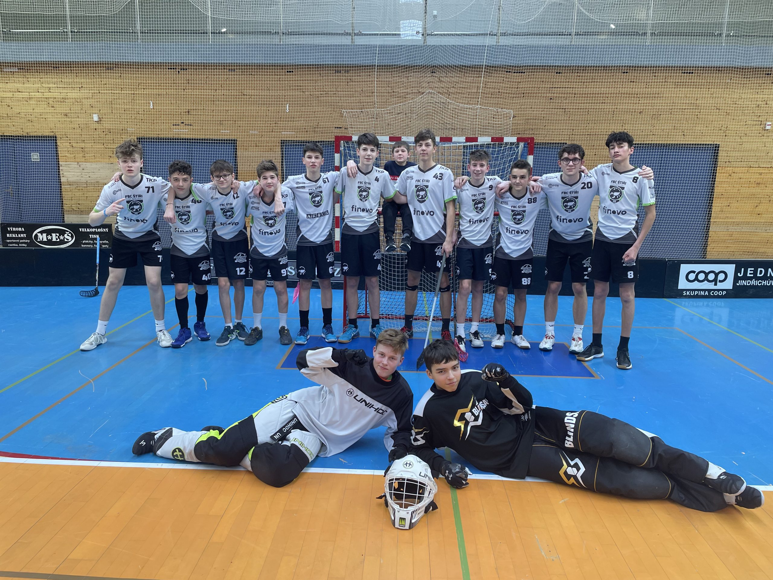 Komentář trenéra modrých Matyáše Cuřína: „Dne 2.3. se modrý tým starších žáků vydal na další ligový turnaj do Českého Krumlova. Jako první kluky čekal domácí tým Rytířů. Zápas byl od začátku do konce v naší režii a až na lehký nedůraz v obraně jsme si došli pro pohodlné vítězství 9:3. Velmi přesvědčivým výkonem se v brance blýskl Ondra Paroubek a o góly se podělily všechny tři útoky. Jako druzí v pořadí byli draci z Milevska. I přes to, že jsme po třech minutách prohrávali 3:0, kluci ukázali sílu a vůli. Hned ve čtvrté minutě nastartoval obrat Kuba Vávra, který v kombinaci s Ríšou Požárkem a Míšou Martínkem procházel obranou Milevska jako nůž máslem. Kluky to vyburcovalo k týmovému výkonu, který skvělou prací v brance opět podtrhnul Ondra Paroubek. Vyrovnání dovršil Filip Hrubý svým obávaným granátem pod břevno. Všichni bojovali až do konce, nikdo si nezasloužil prohrát. Oba týmy se proto rozešly smírně za výsledku 7:7. Nelze opomenout dobré výkony Ondry Holuba, který i přesto, že nepatří k nejzkušenějším, opět přidal dva góly na své konto. Byl to ale týmový výkon po všech stránkách a kluci na sebe mohou být hrdí.“