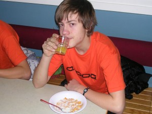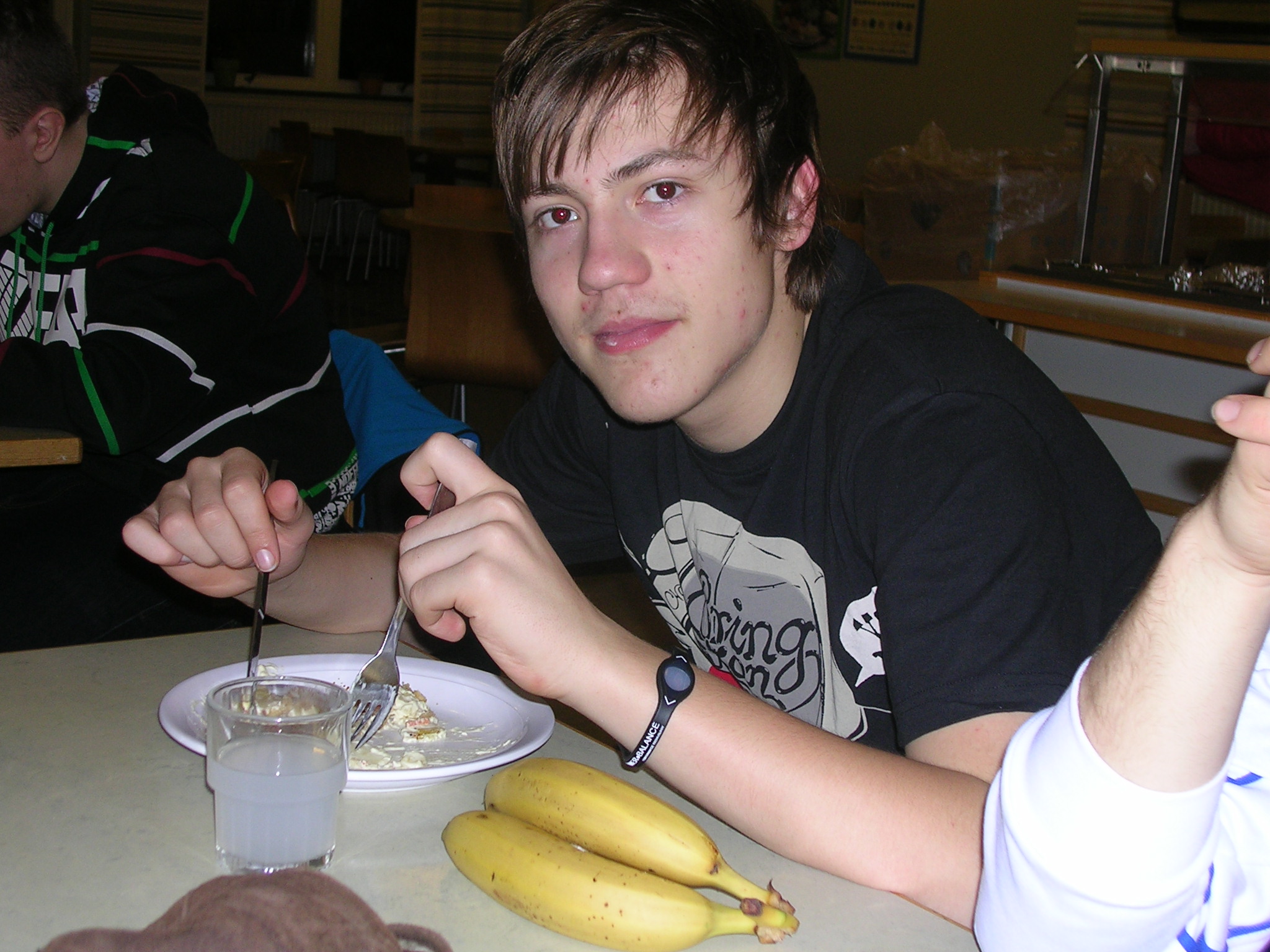 Včerejší den začal budíčkem v 8:15. Po něm se David vydal spolu se svým týmem na snídani do jídelny nedaleko naší školy. K snídani si David dal cereálie s mlékem a džus. Po snídani se Štíři vydali na svůj první zápas na turnaji. V hale Lundbystrand se utkali se švédským týmem Husqvarna IK. Zápas pro Štíry nezačal dobře, když prohrávali po polovině zápasu již 0:3. Ale díky brance Vojty Rybky se dostali zpět do hry a zhruba 7 minut před koncem přišla chvíle i našeho střelce Davida Cahy, který střelou z první po nahrávce Davida Mrzeny snížil na 2:3. Štírů se povedlo ještě vyrovnat, ale na body to stejně nestačili, protože 4 vteřiny před koncem inkasovali na 3:4.