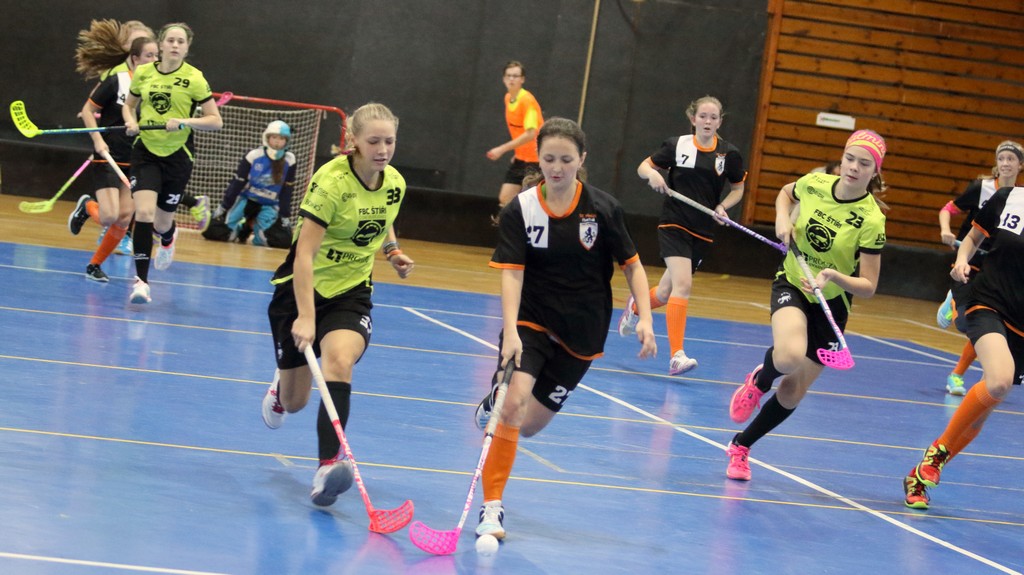 První třetina byla nervózní z obou stran. Většina míčků končila odpalem místo přihrávkou a o hezkém florbalu nemohla být řeč. Pokud se někdo dostal do zakončení a střela mířila na branku, gólmanky si se vším lehce poradily. Stav se tak měnil až ve druhé třetině. Gólmanka Mlezivová „namazala“ nepřesným výhozem na hokejku soupeřky a Štírky prohrávaly 0:1. Nic ale nevzdávaly a o 3 minuty později z nulového úhlu překvapila gólmanku Meťáku Krejčová. Stav 1:1 vydržel pouhých 54 vteřin. Po krásné kombinaci Kubešová-Fuková-Robenhauptová se do prázdné brány trefila Robenhauptová. Těsné vítězství držely Štírky až do 10. minuty třetí třetiny. Vítězství štírek pojistila nekompromisní střelou do branky soupeřek Marinková. Štírky tak vyhrály první zápas sezóny 3:1.