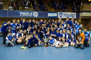 Po skončení mužského finále na naše mladší žáky a dorostenky čekalo ještě jedno překvapení. A to společná fotka s vítězem finále – týmem Chodova!
