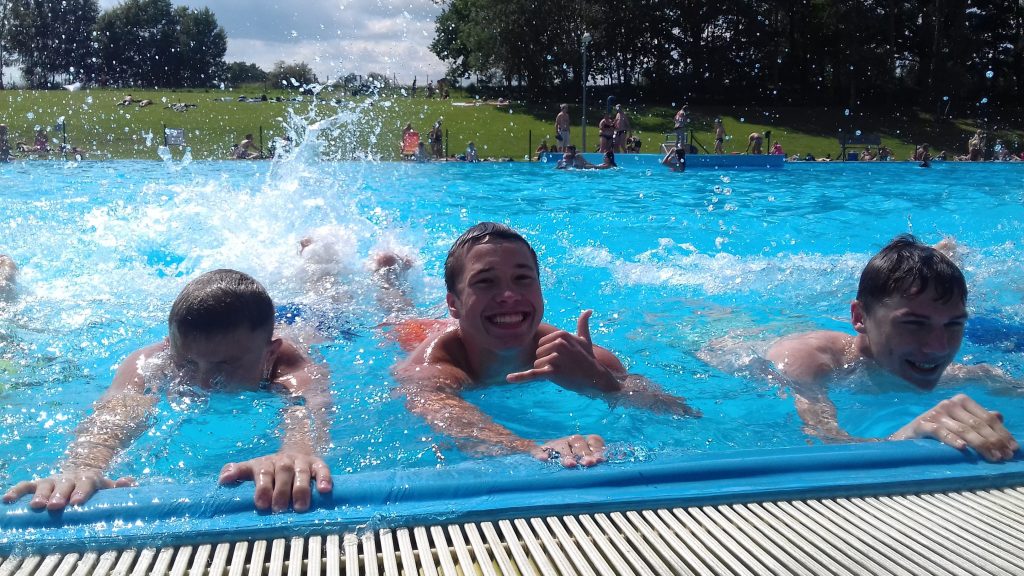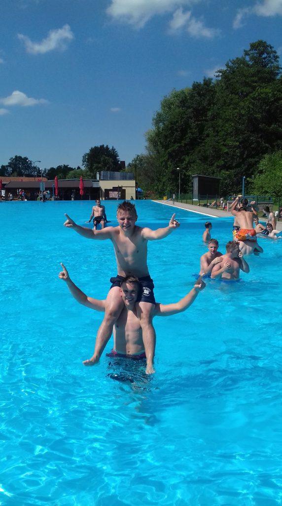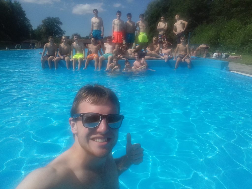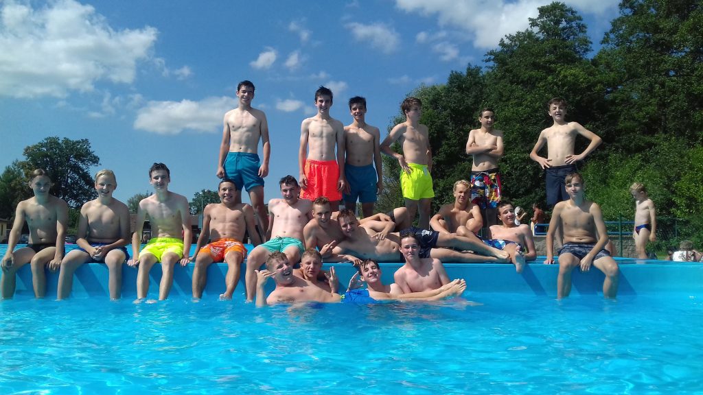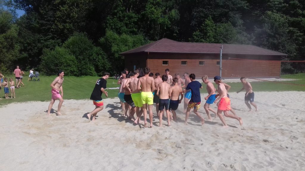Po poledním klidu, jsme díky krásnému počasí, mohli navštívit místní koupaliště. Hráči si nejdříve zaposilovali ve vodě nebo si zaběhali na písku, kde pak trenéři porazili tým juniorů v plážovém volejbale.