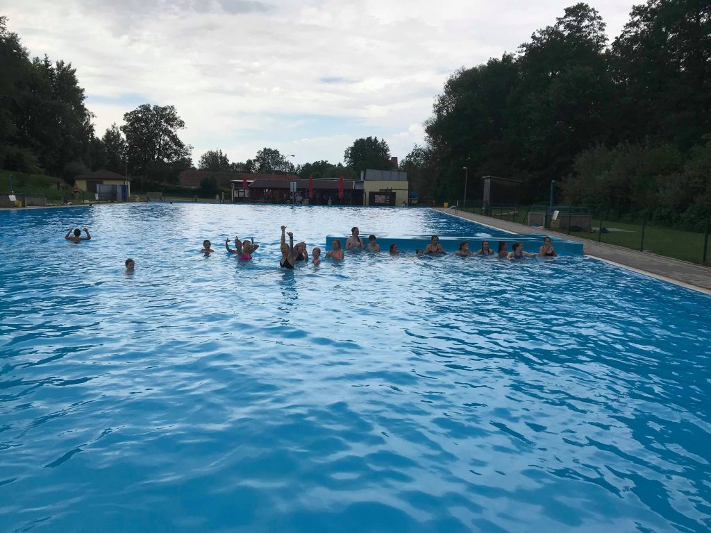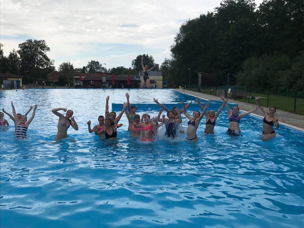 Ve Stropnici nám i nadále počasí přeje a tak jsme mohli vyrazit na koupaliště i dnes. Nejdříve, ale holky ještě musely zamakat. Obíhali jsme koupaliště nebo vybíhali kopečky. Pak následoval turnaj v „přehazce“. K svačině byl meloun a mohlo se do vody. Některé holky si na vodu nevěřily a dále se věnovaly plážovým sportům nebo zkoušely akrobacii.