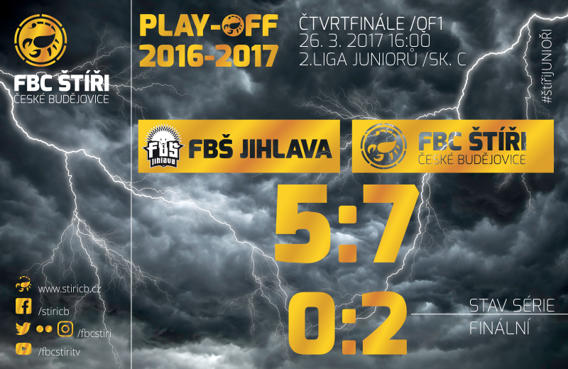 V Dolní Cerekvi Štíři ztvrdili postup do dalšího kola play off! Byť utkání bylo o dost vyrovnanější než to předešlé, přesto naši kluci dokázali zvítězit, tentokrát 7:5. Gratulujeme!