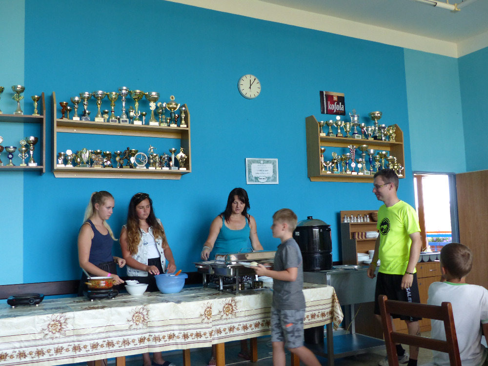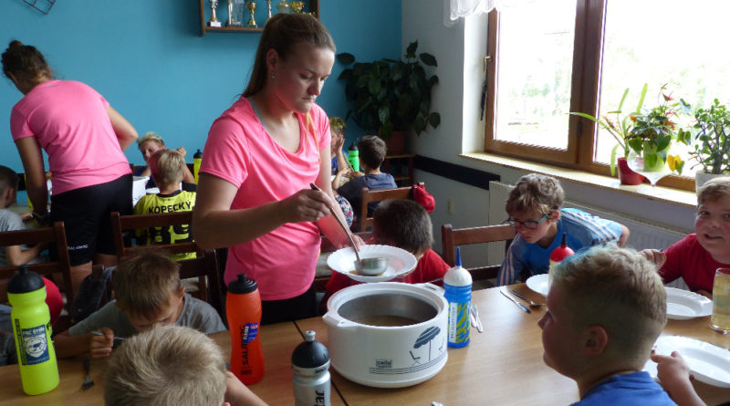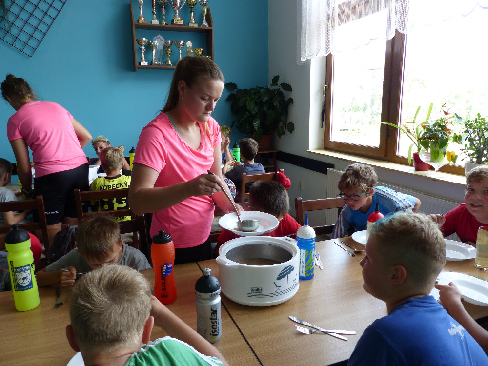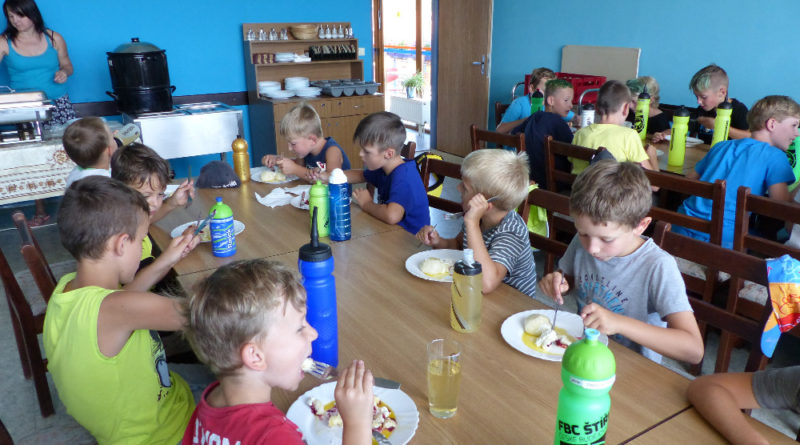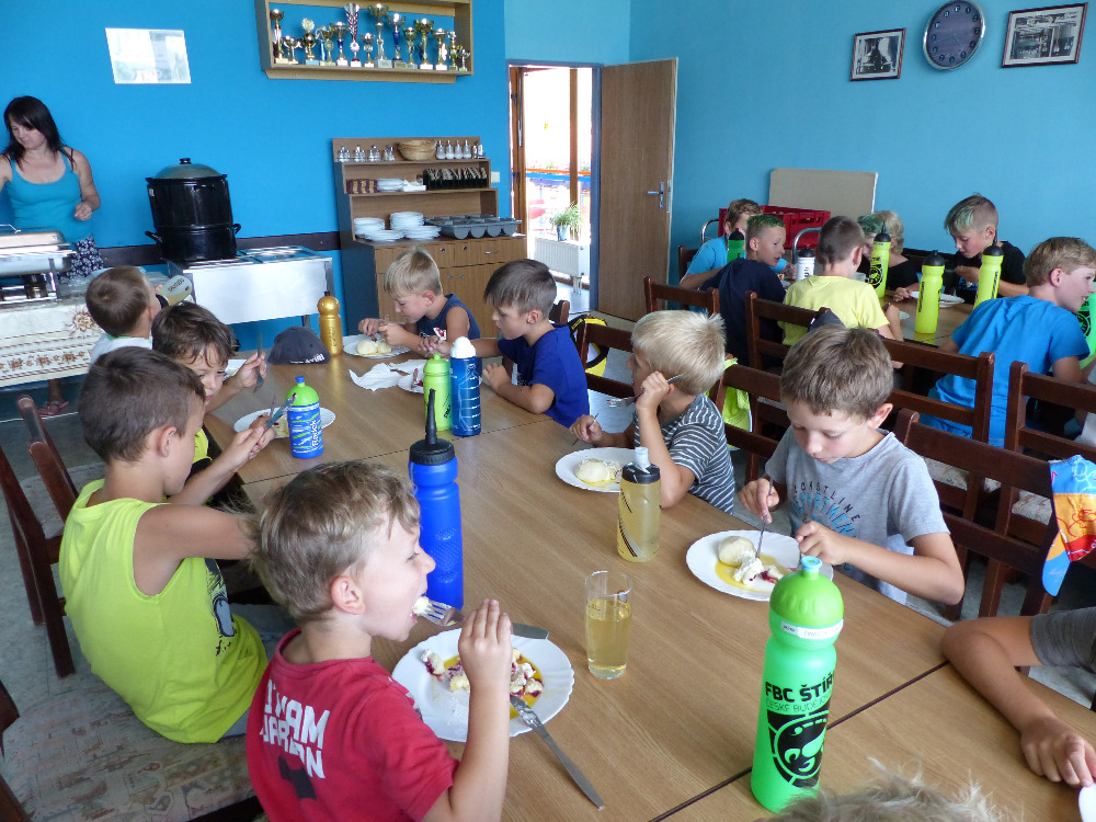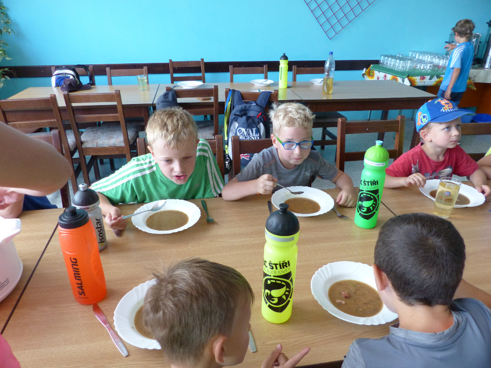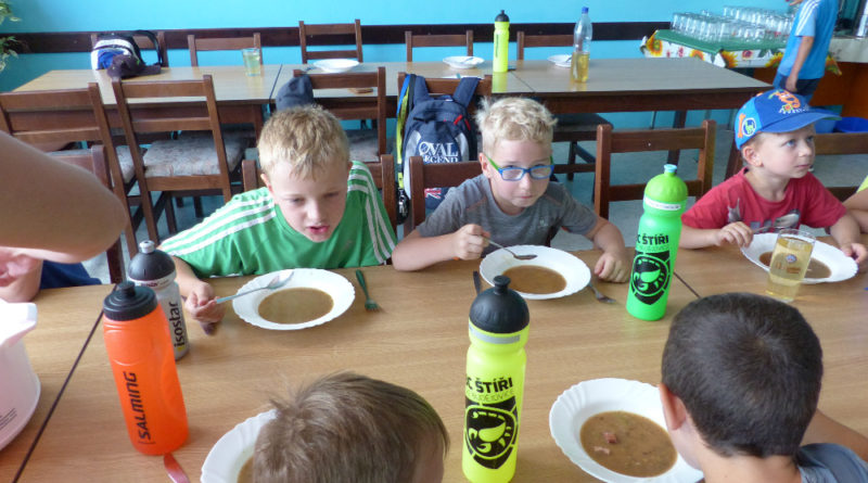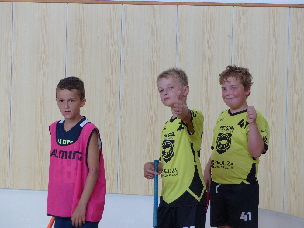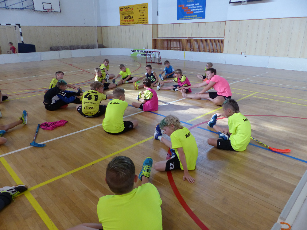 Po odpočinkové středě jsme se opět naplno vrátili k florbalu a bylo vidět, že hráči do něj mají chuť. Dopoledne, za rozumného počasí, Štírci běhali venku a strečovali v hale, v čemž se trenérka Nikča doslova vyžívala. Hráči by raději trávili čas kolektivními sporty, leč je potřeba, aby se uměli správně protahovat (doma to pak mohou rodičům ukázat). Vyrazili jsme pak společně na oběd – šošovicová polévka se s úspěchem úplně nesetkala, ale borůvkové knedlíky, to už byla jiná. Dan marně přemýšlel, jakou dovolenou mu to tentokrát připomíná. Polední klid probíhal v tradičním duchu – 10 minut klídek a hodinu a půl bordel. No, ubytovna pořád stojí, a to je hlavní… Venku začalo být nesnesitelné vedro a tak jsme se schovali do bezvadně přírodně klimatizovaných hal v Horní Stropnici. Jak to tu dělají, nevíme, ale v halách je opravdu příjemně. Tři hodiny florbalu s pauzou na svačinu uteklo jako voda a šlo se na večeři. Tentokrát se podával losos s bramborovým pyré a mrkvový salát. V původním plánu sice pak byla návštěva koupaliště, ale amatérský meteorolog Jura usoudil, že v 19:53 se strhne liják a bude lepší se uklidit na bazu. Jak řekl, tak se také stalo. Plus mínus pár minut. Strhla se bouře intergalaktických rozměrů. Někteří Štíři koukali z oken a sledovali blesky, další se schovávali pod peřiny, a ti ubytovaní ve škole prý neviděli nic, protože mají neprůhledná okna. A tak šli hrát basketbal. Trenéři mezitím pofoukali pár bolístek, vyléčili ustýskaná srdíčka a pomalu ale jistě se šlo ulehnout. V pátek nás čeká poslední den, florbalový turnaj, vyhlášení etapové hry a v 17.00 pak návrat do Českých Budějovic a shledání s maminkami a tatínky. Podle bleskového průzkumu vypadá situace takto: někdo se těší hodně, někdo málo a někdo vůbec.