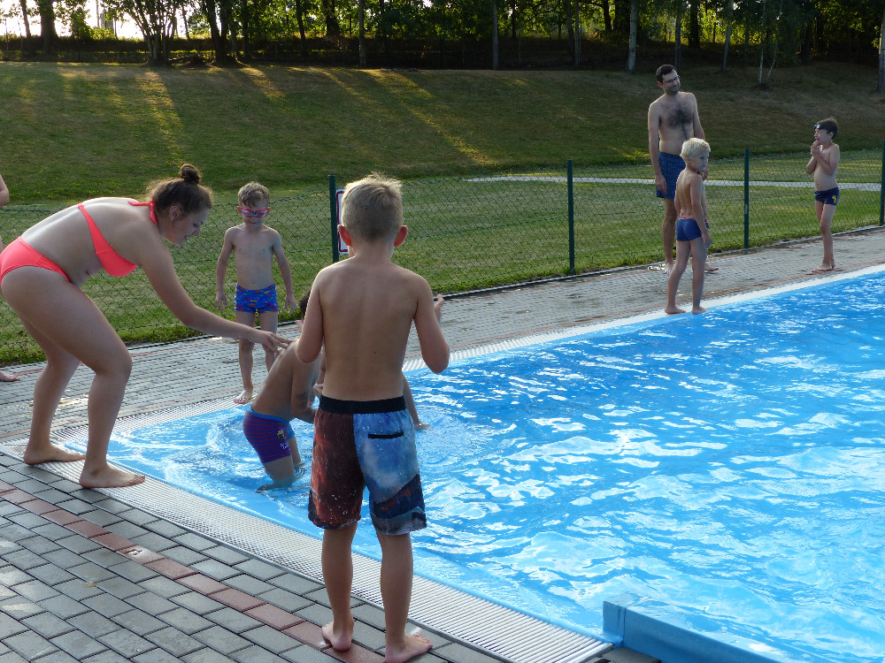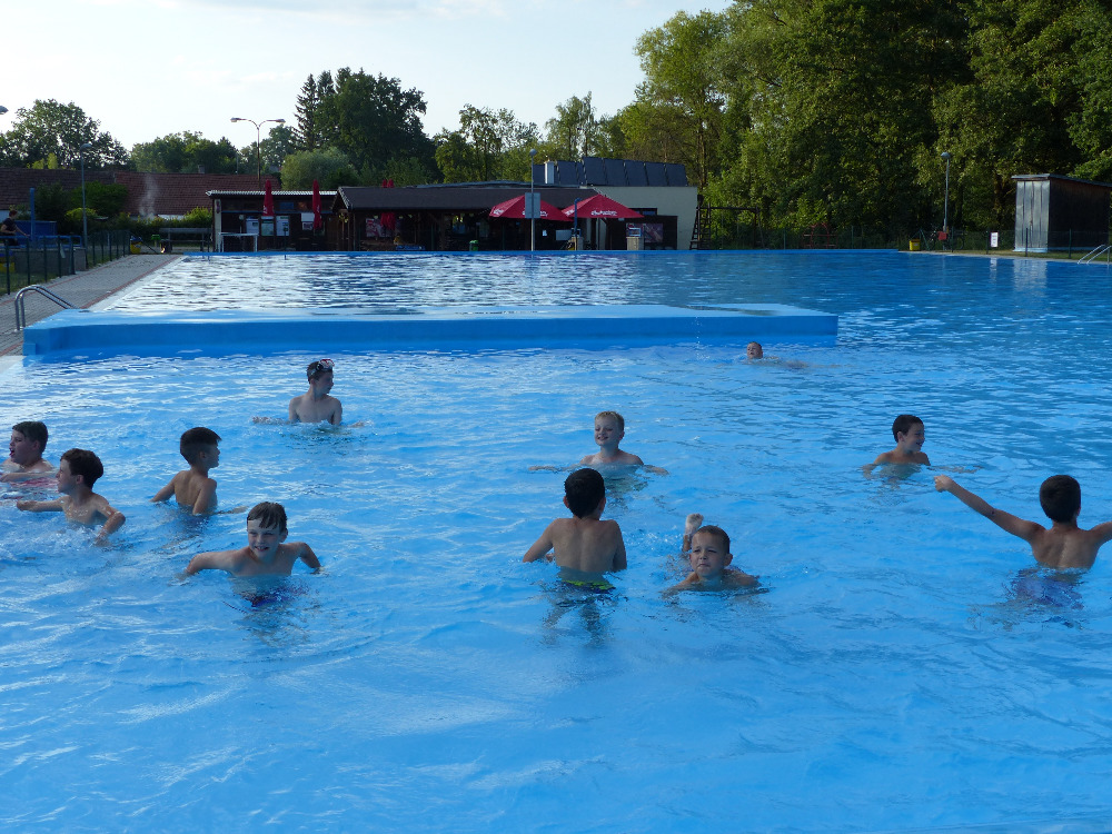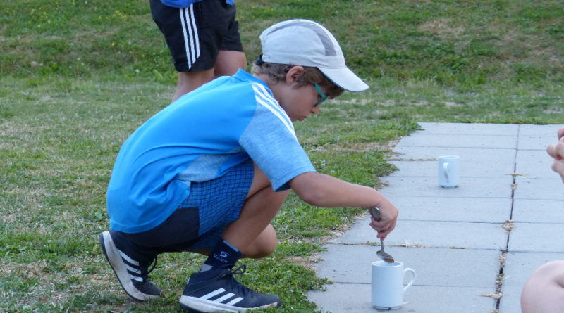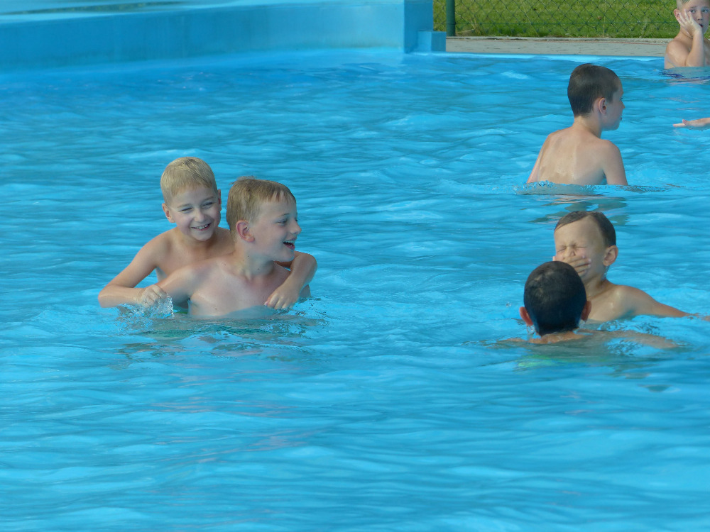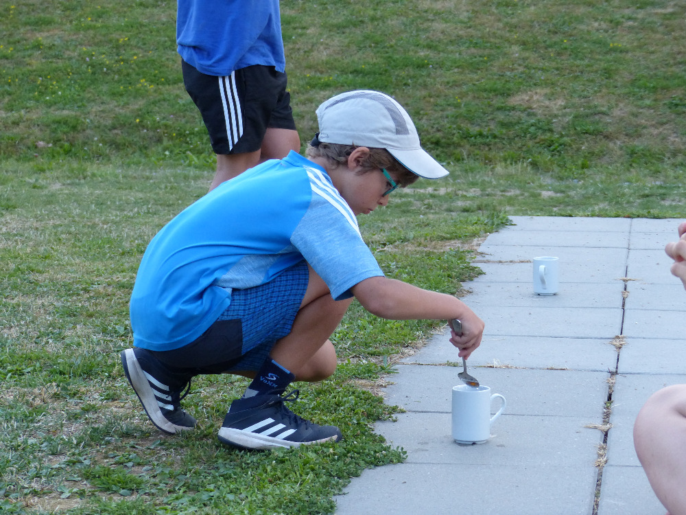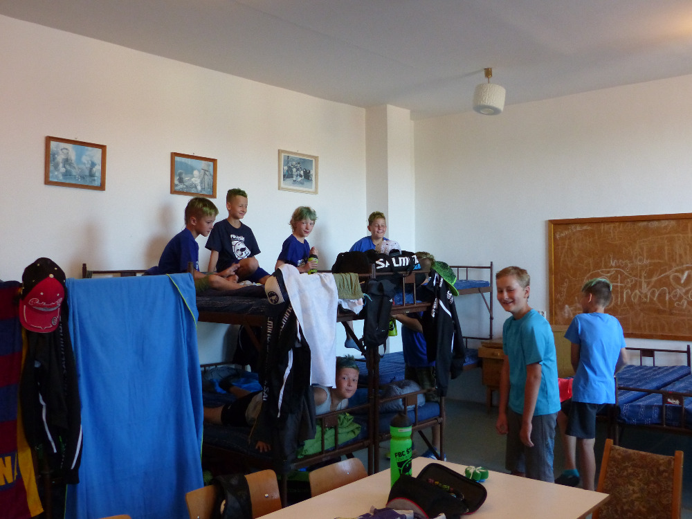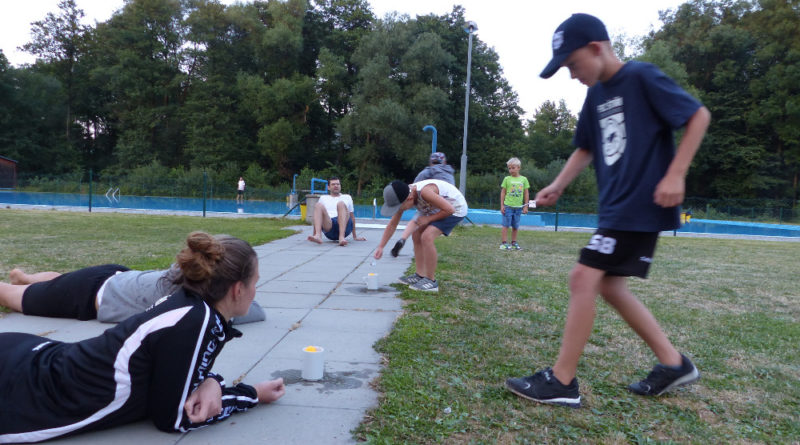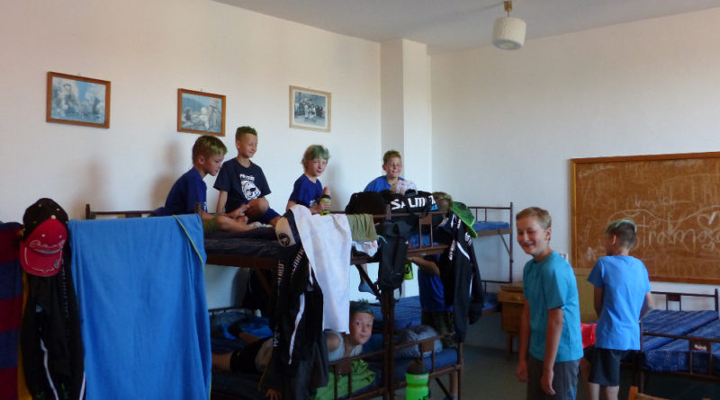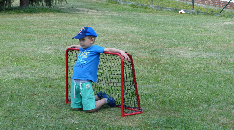 Přesně v 7.30 zazvonil budík, aby načal druhý den soustředění, ale to už byli stejně všichni vzhůru. K snídani se podával výtečný hornostropnický chléb s marmeládou či hnědou pomazánkou, podle chuti. Vydatně posilněni a namazáni opalovacím krémem vyrazili mladí Štíři na trénink. Dopolední dvě fáze rozdělené pauzou na nektarinku probíhaly venku a hráči opět okusili mix kolektivních sportů a koordinačních cvičení. Za velmi teplého dne bylo nutné dodržovat zavodňování, které pak hráči dopřávali i smrčkům v areálu místní školy. K obědu se tentokrát podával brambor zalitý máslem a sekaná, kterou trenérka Nikča, mimojiné zkušená pracovnice v gastru, vyšperkovala červeným a žlutým sósem. Trénéři pak odvedli své svěřence na ubikaci a cestou doufali, že sportovci budou alespoň trochu unaveni. Dvacet minut k naprosté regeneraci stačilo… Přesto Štíři vydrželi ve svých pokojích (a pokoje to vydrželi také, až na jedny vysazený dveře…) až do půl třetí. Poté na ně čekali dvě tréninkové jednotky v hale, aby vytříbili své florbalové dovednosti. Trenéři jim nedali nic zadarmo a po poctivě odvedených hodinách opět všichni usedli k jídelnímu stolu k večeři. Po špagetách se v leckterých talířech sotva zaprášilo, jinde jich zůstalo více, ale o to dříve přišly dotazy na druhou večeři. Jeden z trenérů, který se jmenuje Dan, poznamenal, že to sluníčko a špagety mu připomínají dovolenou v Itálii. O poznání čerstvější trenéři ho v této představě nechali, ale o dovolené mají jinou představu, než že kolem nich pobíhá 35 neúnavných svišťů. Nicméně i tak se kompletní ekipa přesunula vpodvečer na koupaliště. S určitostí lze říci, že voda tentokrát měla více, než je bod mrazu, což přímo vybízelo k vodním hrátkám. Prvotní pokyn: „koupeme se jen v malém bazénu a žádné skákání“ se tak ve finále proměnil na „hodíme do vody Nikču, případně Juru“. Nutno přiznat, že mladí Štíři projevili kolektivního ducha a snažili se dosáhnout díla společně, což se jim nakonec i podařilo. Den zakončil další díl etapové hry, druhá večeře, sprcha a spánek. Ve středu nás čeká odpočinkový den – dopolední výlet a odpoledne strávené u místního koupaliště.