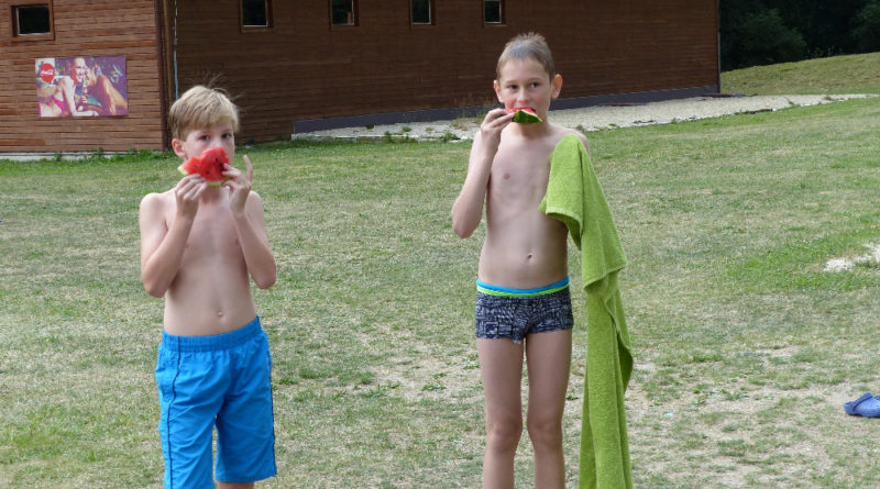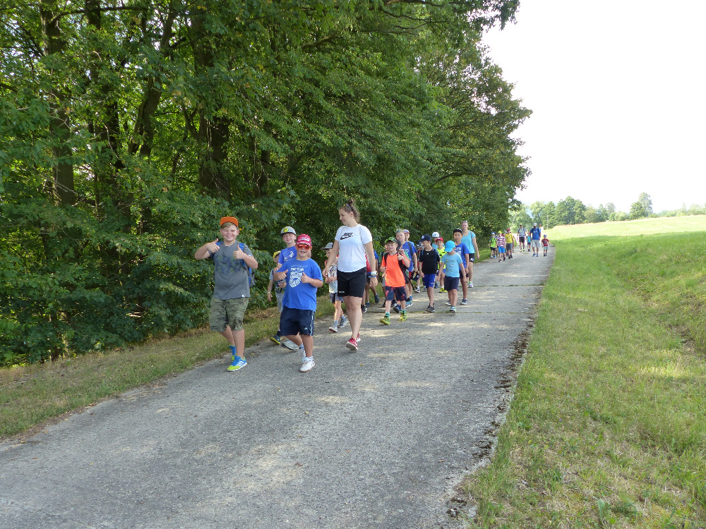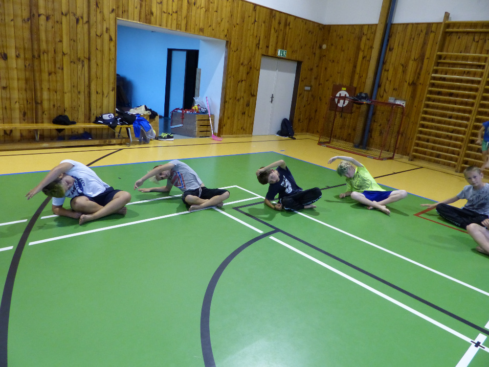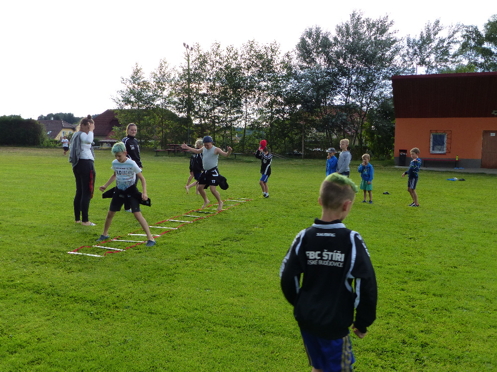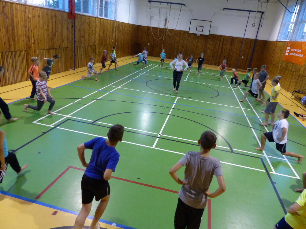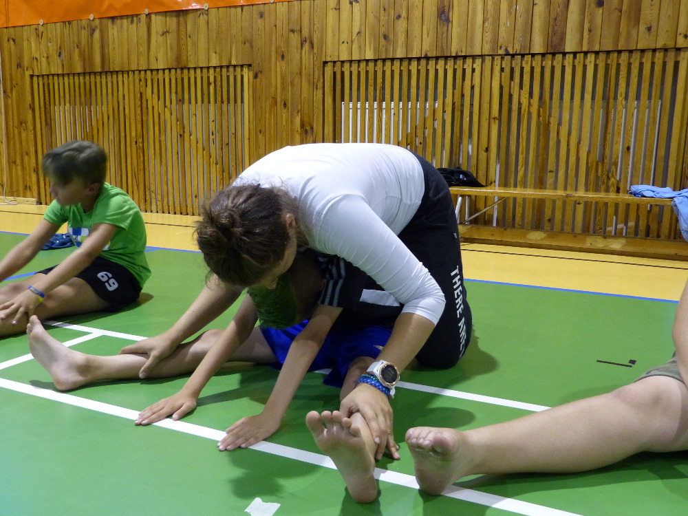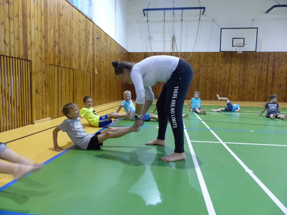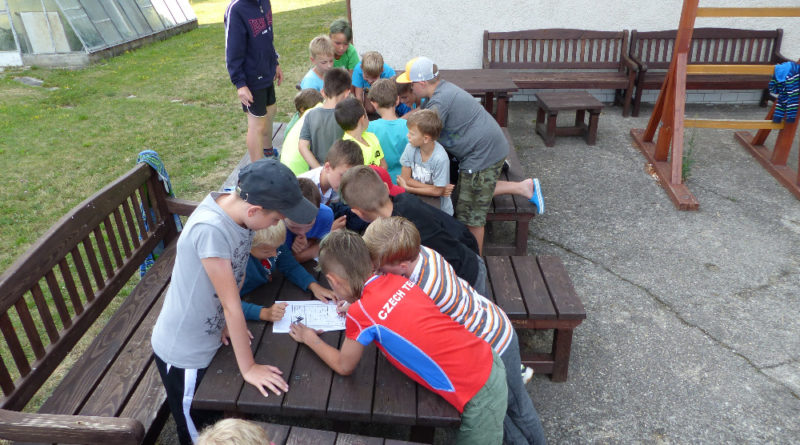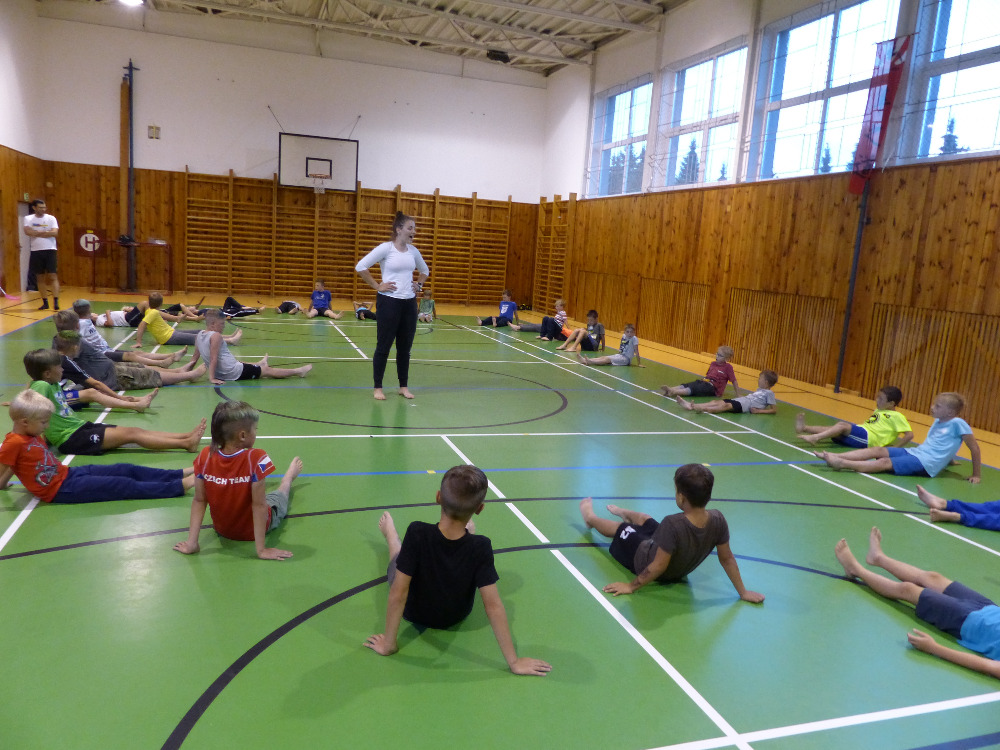 Prostřední den bývá na soustředění vyhrazen výletu. Tak jsme tentokrát hned po snídani vyrazili do Terčina údolí. Jako trenérská výpomoc dorazil Pavel Kouba. Svižnou tříkilometrovou procházku s jednou pauzou na pití zakončil pohled na známý vodopád. Jak už to u podobných exkurzí bývá, děti byly naprosto u vytržení z tohoto historicko-technického skvostu a přímo dychtily po informacích. Naštěstí bylo v okolí několik informačních tabulí, ale ani to mladým a všestranně založeným Štírům nestačilo. A tak vytáhla trenérka Anička z rukávu několik historek o rodu Buqoyů a nasytila svěřence mnoha novinkami, které se jim v životě jistě budou hodit. Pak jsme se občerstvili a vydali se na zpáteční cestu. Na trase jsme ještě zastavili u Vodního díla Humenice, které je zajímavé tím, že uprostřed má přistávací rampu pro létající talíře… Chvilička zbývala do oběda a tak ji pilní Štíři vyplnili úklidem svých buněk na základně, za což byli odměněni pochvalným pokýváním od trenérů. K obědu se servírovala uzená polévka s rýží (včera byla gulášovka, to jsem zapomněl napsat – pozn. aut.) a vepřové plecko s hausegemachte knödel z nějaké velkovýrobny. Při poledním odpočinku bylo znát, že ne všichni odpočinek potřebují, ale časový harmonogram určený šéftrenérem se musí dodržovat. Nebe sice hrozilo, že na nás vyleje pár kýblů vody, přesto jsme se rozhodli, že zkusíme štěstí a vyrazili jsme na koupaliště. Zde se ukázala jako vydatná posila Pavel, který pečlivě hlídkoval na břehu připraven lovit případné utopence. Jeho odborného zásahu nebylo naštěstí potřeba. A tak pomohl rozkrájet meloun jen těsně předtím než přišla slíbená sprška z nebe. Přesunuli jsme se tedy pod přístřešek a sportovcům bylo dovoleno mírně porušit životosprávu a zakoupit si něco v místním bufetu. Objednávka smaženého sýra s hranolkami a tatarkou trenéry zaskočila a tak se jali konzumaci mírně regulovat, neb krátce poté následoval odchod na večeři. Kuřecí řízky přesto padali do hladových úst jako pověstní Němci do krytu (brambory už vzdorovaly více) a mohlo se jít spokojeně na poslední fázi dne. Hra na schovávanou, vědomostní kvíz v rámci etapové hry, ale také posilovna a strečink s názornými ukázkami a vysvětlením všechny znavila. Někteří pak nepohrdli druhou večeří a po sprše všichni zapadli do postelí. Ve čtvrtek totiž pokračujeme!