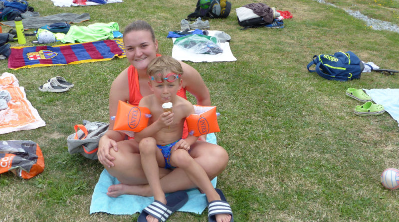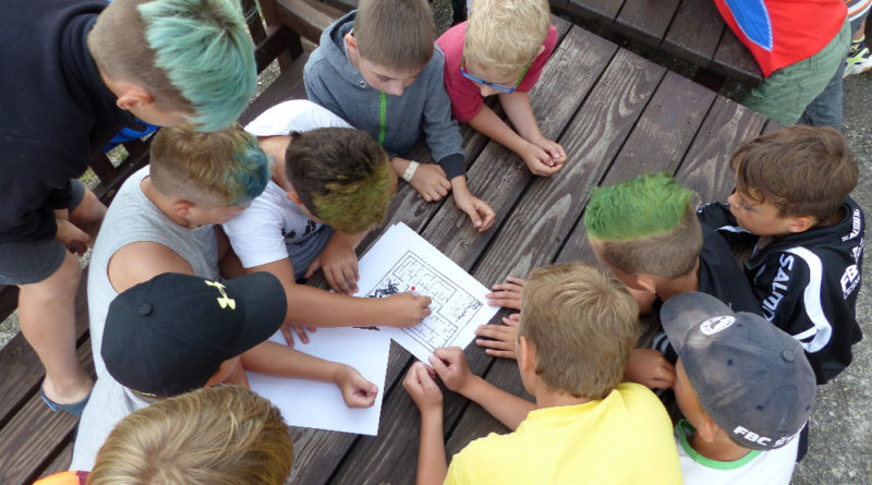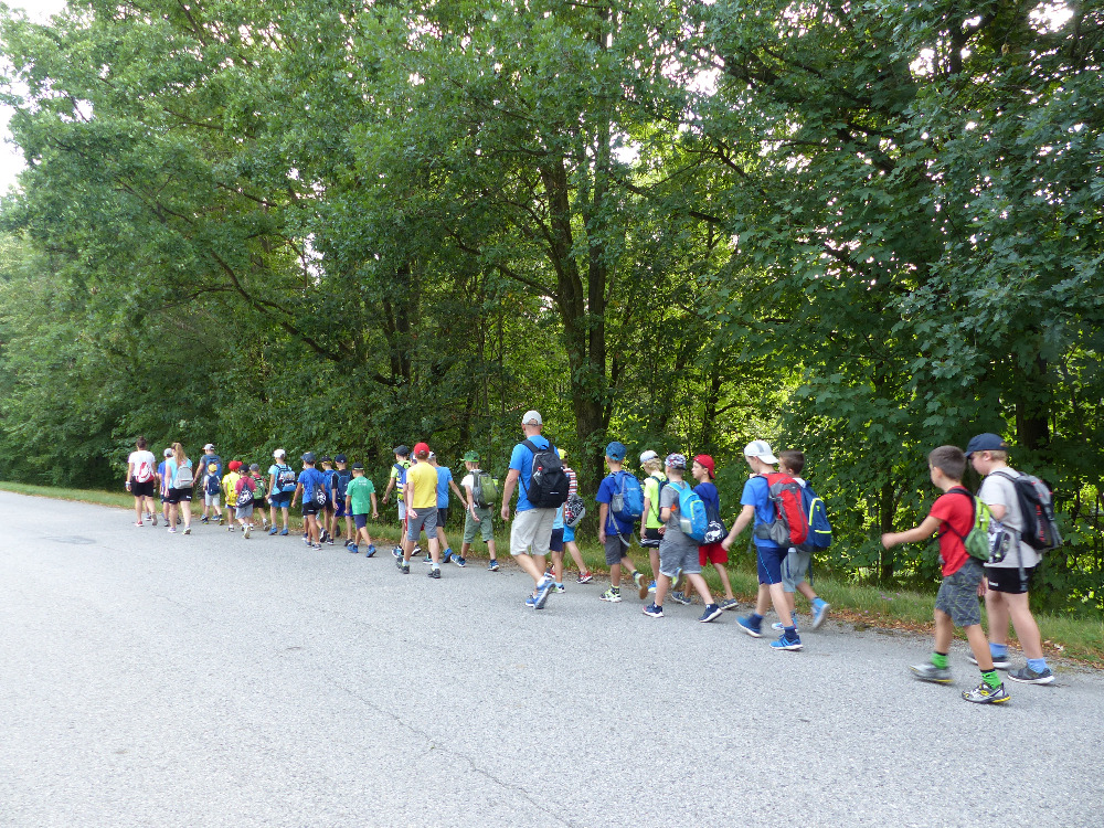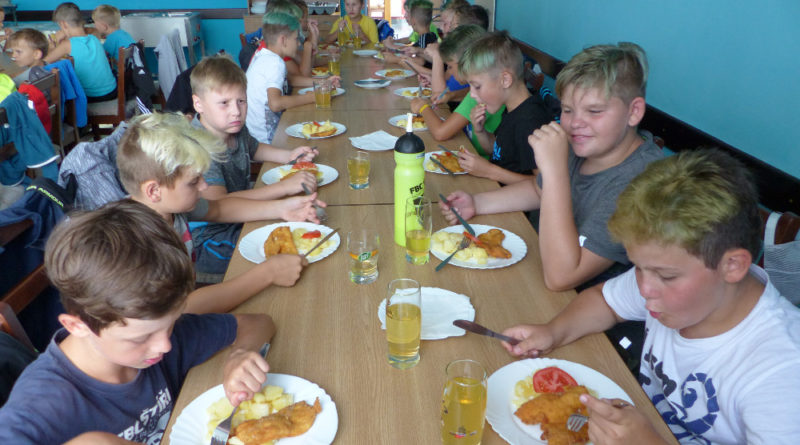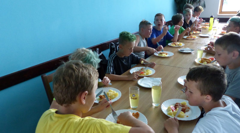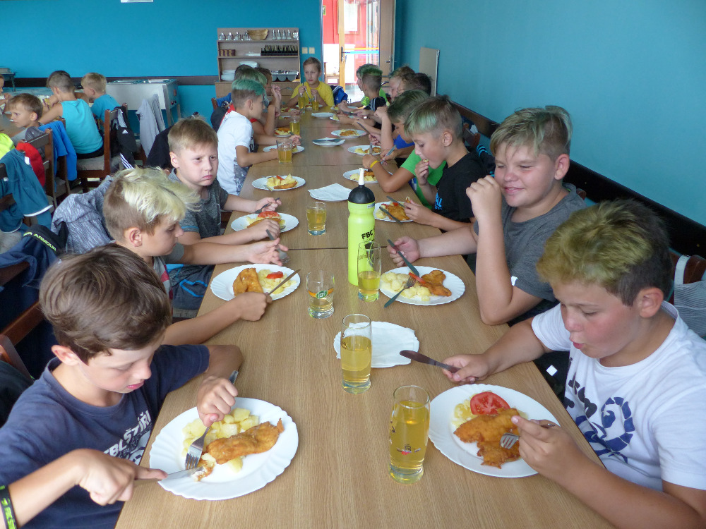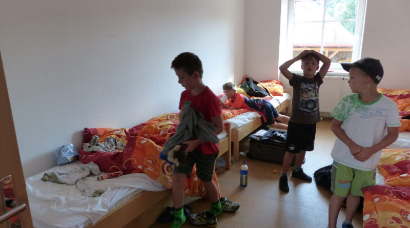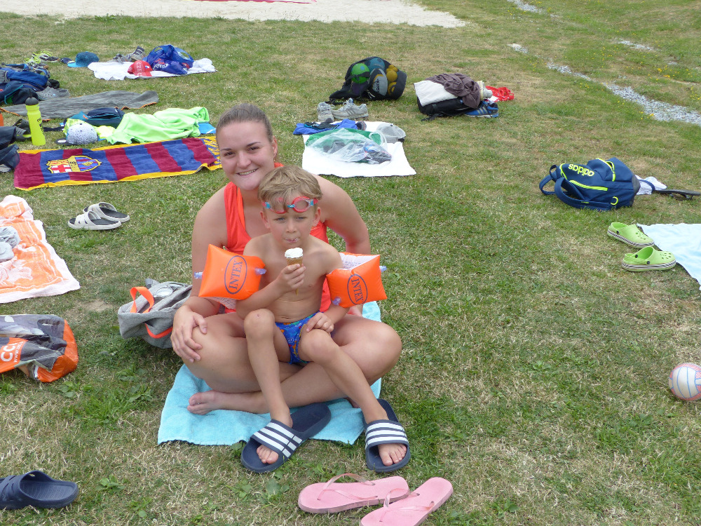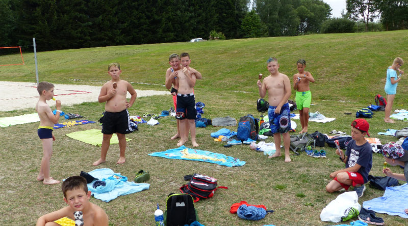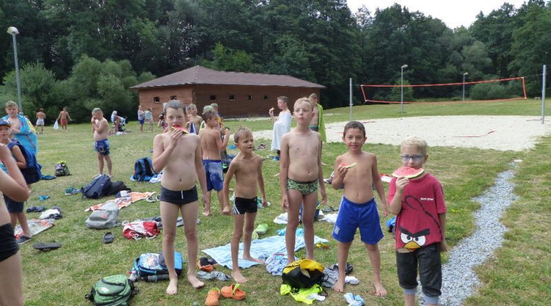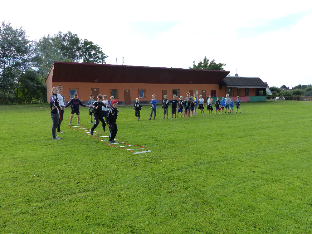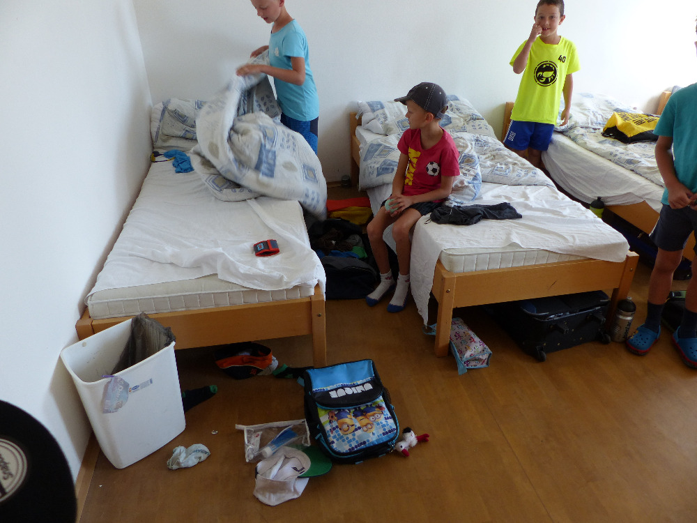 Prostřední den bývá na soustředění vyhrazen výletu. Tak jsme tentokrát hned po snídani vyrazili do Terčina údolí. Jako trenérská výpomoc dorazil Pavel Kouba. Svižnou tříkilometrovou procházku s jednou pauzou na pití zakončil pohled na známý vodopád. Jak už to u podobných exkurzí bývá, děti byly naprosto u vytržení z tohoto historicko-technického skvostu a přímo dychtily po informacích. Naštěstí bylo v okolí několik informačních tabulí, ale ani to mladým a všestranně založeným Štírům nestačilo. A tak vytáhla trenérka Anička z rukávu několik historek o rodu Buqoyů a nasytila svěřence mnoha novinkami, které se jim v životě jistě budou hodit. Pak jsme se občerstvili a vydali se na zpáteční cestu. Na trase jsme ještě zastavili u Vodního díla Humenice, které je zajímavé tím, že uprostřed má přistávací rampu pro létající talíře… Chvilička zbývala do oběda a tak ji pilní Štíři vyplnili úklidem svých buněk na základně, za což byli odměněni pochvalným pokýváním od trenérů. K obědu se servírovala uzená polévka s rýží (včera byla gulášovka, to jsem zapomněl napsat – pozn. aut.) a vepřové plecko s hausegemachte knödel z nějaké velkovýrobny. Při poledním odpočinku bylo znát, že ne všichni odpočinek potřebují, ale časový harmonogram určený šéftrenérem se musí dodržovat. Nebe sice hrozilo, že na nás vyleje pár kýblů vody, přesto jsme se rozhodli, že zkusíme štěstí a vyrazili jsme na koupaliště. Zde se ukázala jako vydatná posila Pavel, který pečlivě hlídkoval na břehu připraven lovit případné utopence. Jeho odborného zásahu nebylo naštěstí potřeba. A tak pomohl rozkrájet meloun jen těsně předtím než přišla slíbená sprška z nebe. Přesunuli jsme se tedy pod přístřešek a sportovcům bylo dovoleno mírně porušit životosprávu a zakoupit si něco v místním bufetu. Objednávka smaženého sýra s hranolkami a tatarkou trenéry zaskočila a tak se jali konzumaci mírně regulovat, neb krátce poté následoval odchod na večeři. Kuřecí řízky přesto padali do hladových úst jako pověstní Němci do krytu (brambory už vzdorovaly více) a mohlo se jít spokojeně na poslední fázi dne. Hra na schovávanou, vědomostní kvíz v rámci etapové hry, ale také posilovna a strečink s názornými ukázkami a vysvětlením všechny znavila. Někteří pak nepohrdli druhou večeří a po sprše všichni zapadli do postelí. Ve čtvrtek totiž pokračujeme!