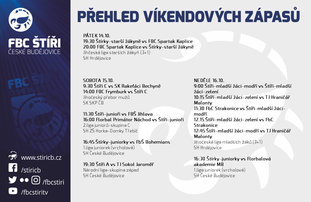 Zápasový víkend tentokráte pro Štíry začíná již v pátek večer a naše týmy nastoupí k úctyhodným 14ti zápasům!