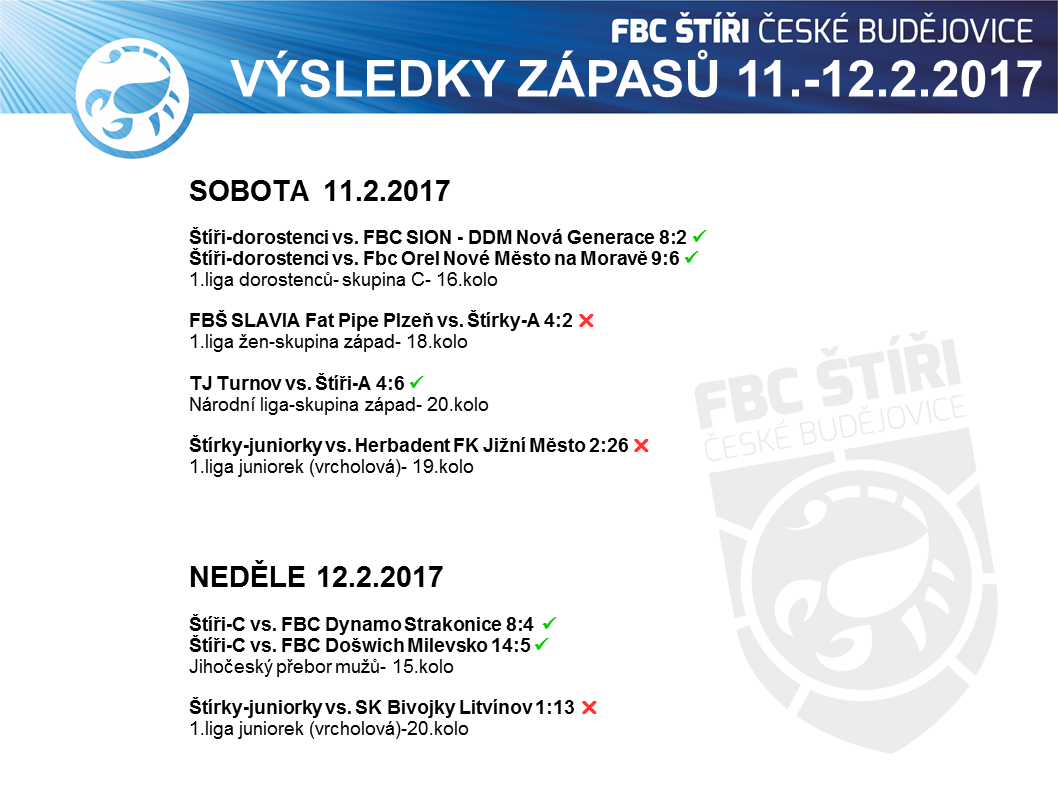 Po sobotním tvrdém direktu bylo těžké nastoupit k dalšímu utkání. Nicméně Štírky držely proti Bivojkám z Litvínova dlouho krok a soupeře zaskočily aktivním florbalem. Bohužel po vyčerpání fyzického potenciálu Jihočešek Litvínov převzal otěže utkání pevně do svých rukou a zvítězil 13:1.