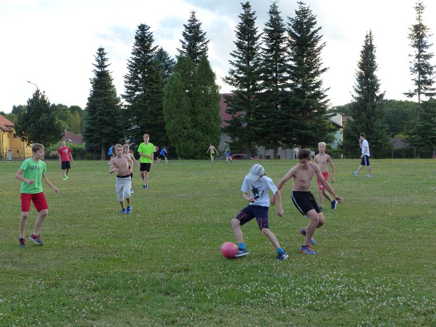 Druhý den soustředění přinesl opět plno sportovních aktivit pro všechny týmy a hráče. Počasí nám zatím přeje, bylo sice trochu větrno, ale slunečno. Mohlo se tedy kvalitně potrénovat i na venkovním hřišti, kde probíhaly zápasy v basketu, házené a i oblíbeném fotbálku. Samozřejmě došlo i na pokračování etapové hry, kde se nejvíce dařilo týmu Tibíkovců. V čele ale nadále zůstává tým Stěhováků. Co se týká stravy, nemůžeme na nic stěžovat. K obědu nám místní vyhlášený šéfkuchař nachystal výbornou polévku a boloňské špagety a večeři vyšperkoval famózním řízkem.