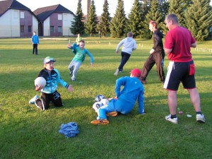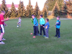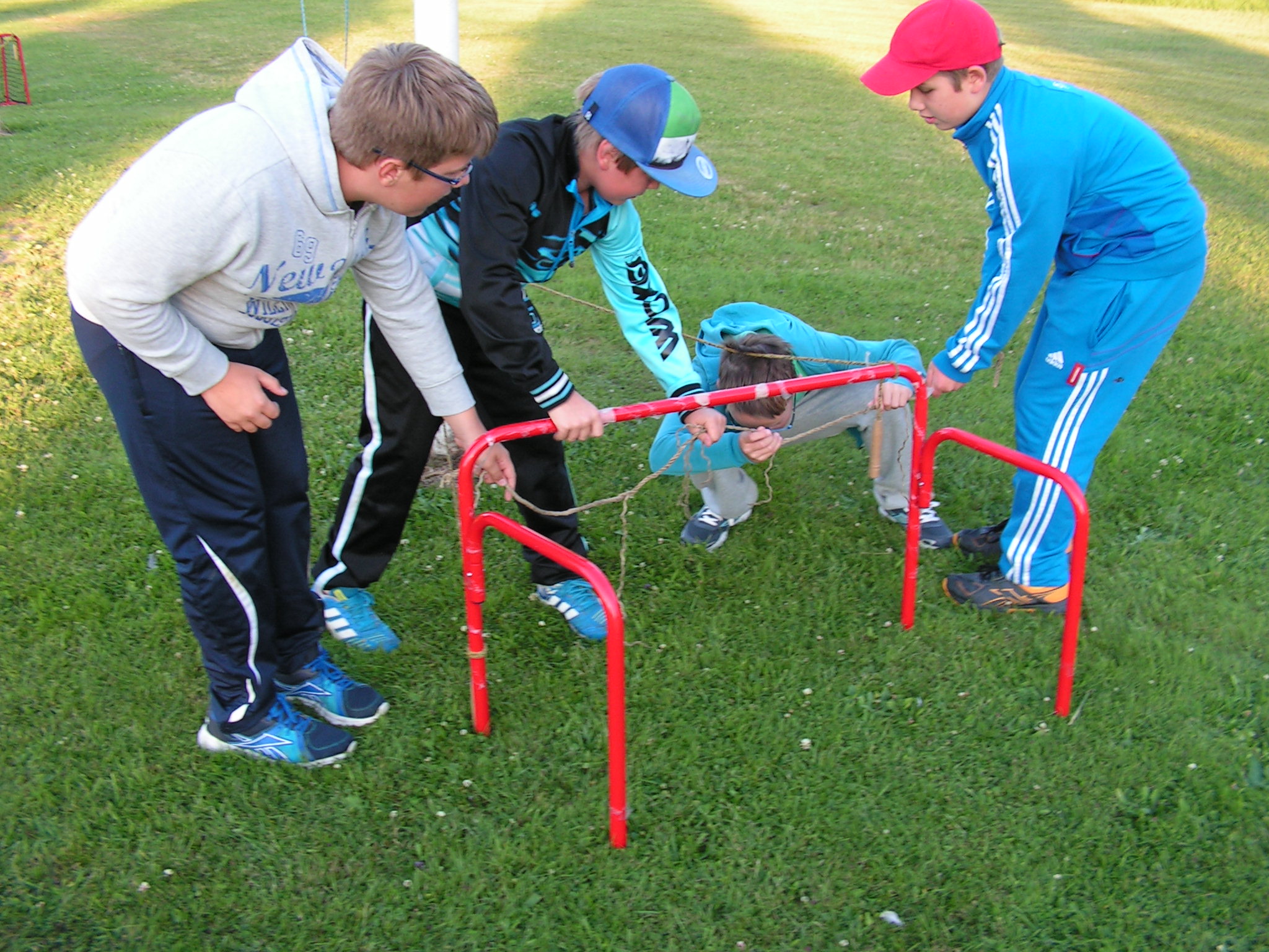 Soustředění se nám přiblížilo ke konci. Dnes jsme ale trénovali stejně pilně jako v předchozích dnech. Dopoledne nejdříve na hřišti (díky velmi vydařenému počasí), kde jsme si nacvičili skoky přes švihadlo a poté v hale. Během poledního klidu jsme shlédli další film a náborové video Štírů, které sklidilo obrovský úspěch. Odpoledne jsme si na hřišti zopakovali koordinační cvičení a v hale si zahráli florbal na velkém i malém hřišti. Po výborném řízku k večeři jsme završili etapovou hru. Úkolem bylo najít švihadla, která by spojila tým k sobě, následně projít dráhu s různými překážkami a sebrat míč, který chránili „staré olympijské sporty“. Naši trenéři. Tato hra nám ovlivnila také bodování. Stejně jako v čele Tour de France i my máme svého jezdce ve žlutém trikotu. Nejvíce bodů (145) zatím získal Ondra Veselý a vede o celých 11 bodů nad druhým Honzou Wittnerem.