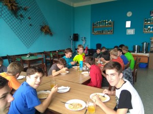 Poté českobudějovičtí florbalisté vyrazili na oběd, ke kterému se servírovaly brambory a masem a vydatnou polévkou. A jak probíhal odpolední program? Na to jsme se zeptali Tomáše Drobiše: „Měli jsme dva florbalové trénink a na každém nás čekal další zápas na body do celotáborové hry. Nejdříve jsme vyhráli my (Chilli Pampers) 3:2 na nájezdy a poté zvítězila 4:3 Alfa. Po večeři jsme ještě zvítězili 3:1 ve standardních situacích.“ Poté již následoval odchod na ubytovnu, večerní klid a večerka.