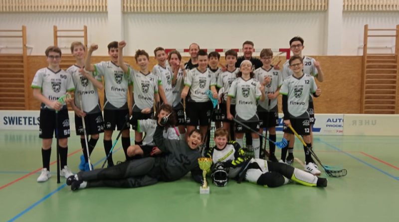 O první dubnové sobotě se v Hrdějovicích uskutečnil turnaj Pohár starších žáků Jihočeský kraj – O pohár hejtmana Jihočeského kraje, kterého se zúčastnil tým Modrých. Jelikož se ve stejný den konal i turnaj o mistra Jižních Čech v téže kategorii, tak jsem si na výpomoc pozval údernou útočnou jednotku a strážce svatyně z týmu Mladších žáků. Souboje ve skupině jsme načali s týmem TJ Centropen Dačice. Začátek zápasu se nám povedl a po dvou gólech útočné letky mlžů vedeme v sedmé minutě 2:0. Bohužel nekoncentrovanost v poslední půlminutě prvního poločasu znamená, že do druhého poločasu vstupujeme za vyrovnaného stavu. Ve druhém poločase se vedení přelévá ze strany na stranu a já začínám pociťovat potřebu prášků na srdce. Necelé dvě minuty před koncem prohráváme 3:4. Ovšem v přesilovce si bere slovo snajpr Víťa Capl a po individuální akci srovnává na 4:4. Pomalu se chystáme na nájezdy, když se svou do mlýna přispěchá Šimon Nídl a půl minuty před koncem dává gól na 5:4. Teď nastává pravé drama, Dačice jdou do šesti a tlačí nás do hluboké obrany. V té chvíli utíká štírek Jenda Fišer a potvrzuje naše vítězství do prázdné branky. Druhý zápas hrajeme proti TJ Netolice 1892 Rafani a začátek máme hororový, neboť hned v první minutě prohráváme 0:1. Tímto je odstartováno divokých 180 vteřin, po kterých svítí na ukazateli stav 2:2. V sedmé minutě jdeme do vedení 4:3 a hra se zklidňuje. Bohužel opět nezvládáme poslední půlminutu prvního poločasu a v čase 9:20 Rafani srovnávají. Ovšem to by nebyli naši mlži, aby ještě 12 vteřin před koncem poločasu nepřeklopili vedení zpět na naši stranu. Ve druhém poločase už si jen koušu nehty nervozitou, ale stav se již nemění a po dvou výhrách vyhráváme svou skupinu. Po základních skupině následuje odpoledne semifinále. Toto se již hraje na 3×10 minut čistého času a soupeřem je nám tým FBC Došwich Milevsko Bílí. Opět to není zápas pro slabé povahy a po gólové přetahované v každé třetině končí zápas vyrovnaně 6:6. Ve finálové části turnaje se hraje pětiminutové prodloužení pět na pět a toto tedy následuje. Po vyrovnané první minutě jdeme bohužel po faulu do čtyř a začínají dvě minuty stresu. Naštěstí všechny šance soupeře přečkáme a aktivně vlítneme do poslední minuty. V té k dalekému výhozu napřahuje brankář Tomáš “Skalda“ Skalický a nachází rozběhnutého Fíšu, který si