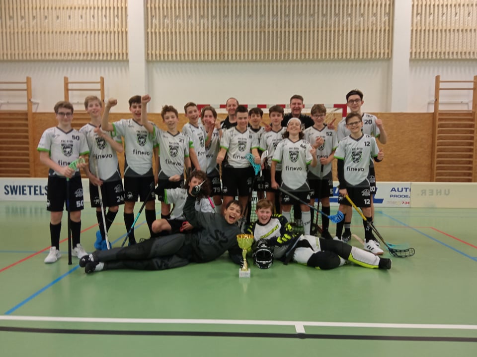 dlouhou kličkou pokládá brankáře a backendem pod jeho tělem rozhoduje o našem postupu do finále. Ovšem velká poklona týmu Milevska, který turnaj hraje na osm hráčů a byl nám více než zdatným soupeřem. Ve finále nastupujeme do budějovického derby proti FA Č. Budějovice. Po lehkém oťukávání se rozjíždí štírský brankostroj a první třetinu vyhráváme 4:1. Ve druhé třetině je již znát na týmu soupeře únava po heroickém výkonu v semifinále a naši hladoví střelci posílají do branky jeden projektil za druhým. Hráči drží celý zápas vysoké tempo a předvádí pohledné akce, které po krásných krosech končí střelami do prázdné branky. Konečné skóre 16:1 je pro soupeře až příliš kruté, ale naše radost z vítězství je nekonečná a kapitán týmu David “Kuře“ Slepička přebírá z rukou prezidenta klubu FBC Štíři Č. Budějovice Jiřího Kratochvíla krásný pohár.