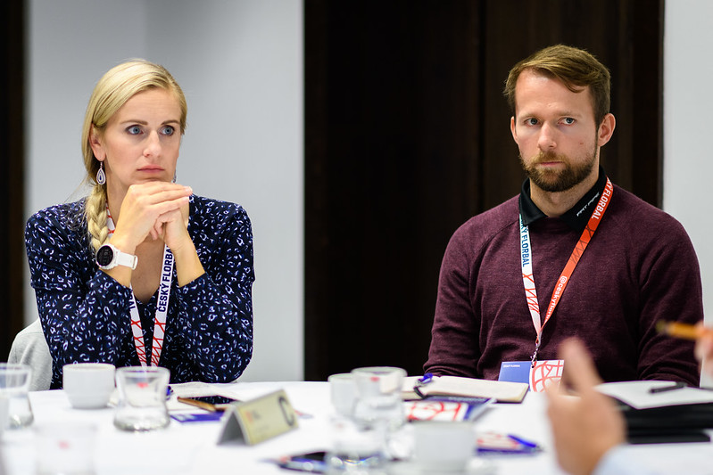 Barbora Čížková, jejíž oblastí je organizační složka, i Lukáš Malý za sportovní složku absolvovali řadu debat u kulatého stolu. Probíraná témata byla budování značky, plánování a strategie, řízení klubu, pořádání eventů, udržitelnost, mentální příprava U2 až U13, skills, hráč na vlastní pohon, trenéři ve škole a budoucnost ženského florbalu.