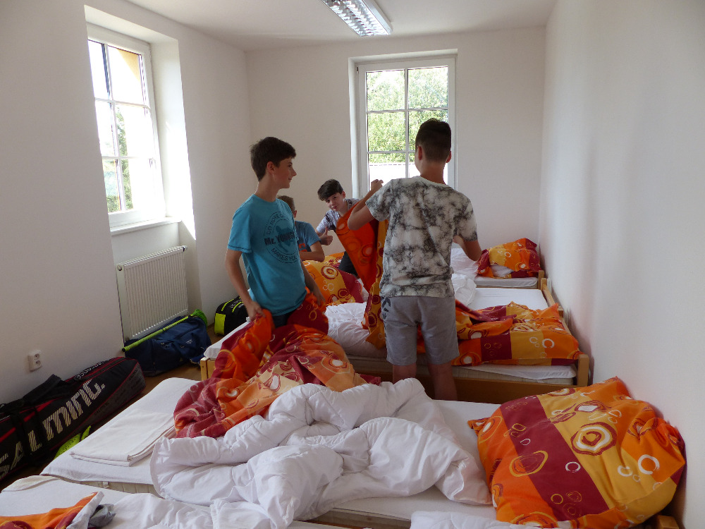 Jako první přišli na řadu mladší a starší žáci, kteří v pátek 30.6.2017 v odpoledních hodinách vyrazili ještě s mokrým vysvědčením do Horní Stropnice, aby zahájili přípravu na turnaj Prague Games a také na novou sezonu. První den přišlo na řadu ubytování, povlékání postelí, a poté hned hráči absolvovali ostrý herní trénink. Také došlo na pojmenování 4 týmů, které budou po celou dobu hrát celotáborovou hru, týmy s názvy Kauflánďáci, Tibíkovci, Stěhováci a Uprchlíci povedou trenéři, Kuba „Džangy“ Jung, Dan Placer, Venca Bíca, David Štěpka. To vše pod dohledem šéftrenéra Lukáše Malého. Výborná večeře a šlo se na další program! Počasí nám přálo, takže večerní hra mohla proběhnout venku na hřišti. Konec prvního dne byl završen večerkou ve 22 hod.