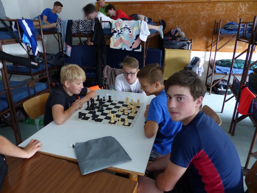 Po jídle následoval u některých nejoblíbenější část dne, polední klid. Odpočinku využili hlavně trenéři. Hráči si lámaly mozkové závity při šachách.
