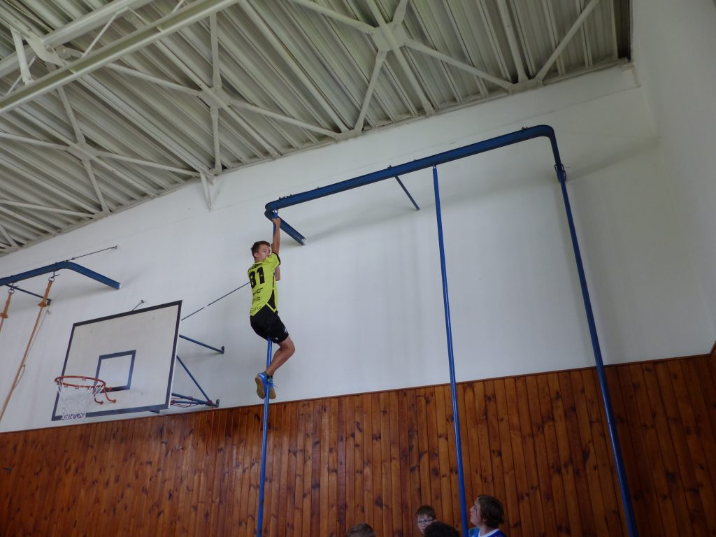 Po probuzení následovala klasická rozcvička, starší se proběhli kolem školy, poté si zahráli házenou. Mladší se přesunuli, kam jinam než na hřiště u školy, kde si vyzkoušeli rugby, naštěstí se nikdo nezranil.