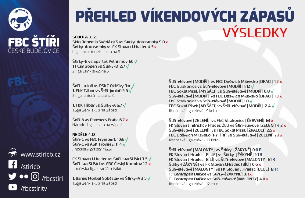 Mužský C tým po sérii porážek dokázal v domácím prostředí naplno bodovat. Před Štíry se musely pomyslně sklonit celky FBC Frymburk (10:6) a ASK Trojmezí (11:4).