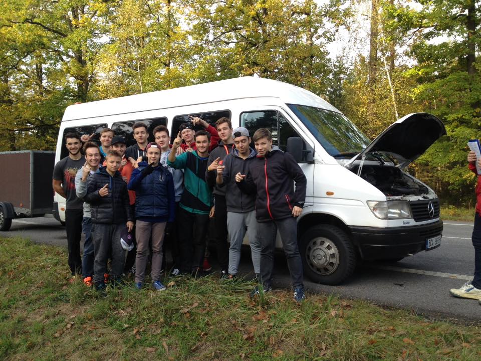 Junioři ráno vyrazili k zápasům do Třebíče, ale daleko nedojeli. Za Třeboní je zradilo auto a odmítlo jet dál. Na náladě to týmu neubralo a brzy pro hráče přijel náhradní vůz.