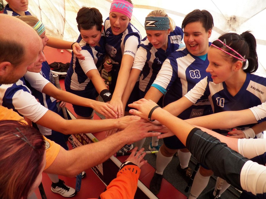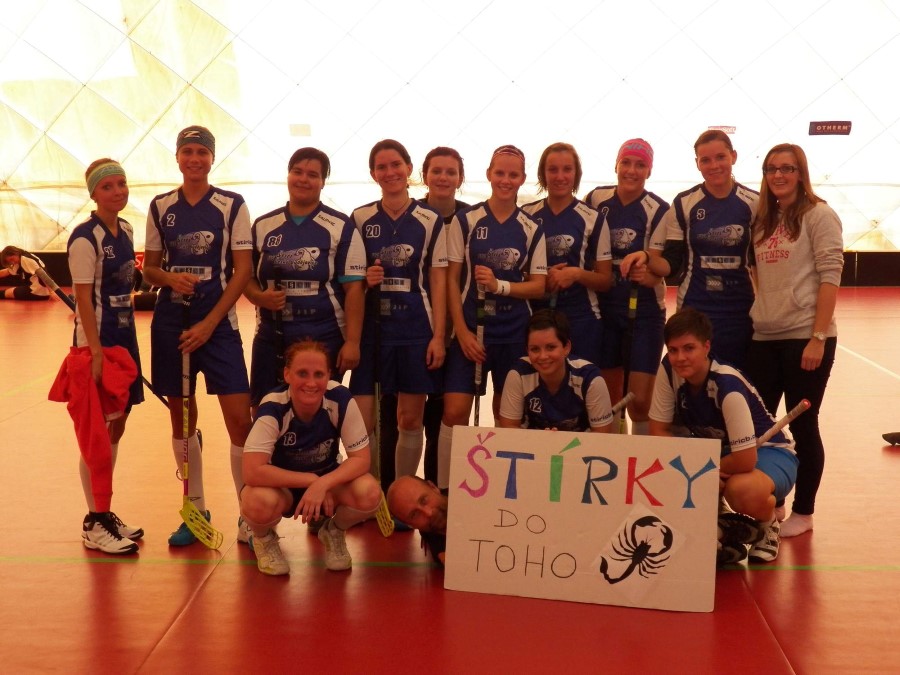 Do druhého zápasu nastoupily ženy ve vyhřáté hale SKP proti rezervě Jihlavy. Lada Janošťáková, hájící v letošní sezoně barvy Jihlavy A seděla za pořadatelským stolkem zmatená, komu fandit… Další prohru už ale nechtěly Štírky dopustit a na herním projevu to bylo znát. Hra byla mnohem uhlazenější, pohyb hráček rychlejší a dodržování systému se vyplatilo hned ve čtvrté minutě. Po přihrávce Verči Jedličkové poprvé rozvlnila síťku jihlavské branky naše nová kanonýrka Katka „Zaďka“ Zadinová. To bylo ale v první třetině vše. Ani druhá třetina další góly nepřinesla a hubený náskok jednoho gólu soupeřky zlikvidovaly hned na začátku třetí třetiny. Zápas tak začal od nuly. Štírky bojovaly, ale gól ne a ne padnout. Několikrát netrefila prázdnou bránu v dobré střelecké pozici Alex Lapková a smůlu měla i Denda Tichá. Do své obvyklé formy se ale konečně dostala Jedličková. Na polovině hřiště vybojovala balonek a neohroženě šla sama na brankářku Jihlavy. Střela neomylně prošla mezi tyče a tento náskok si už holky nenechaly vzít. Naopak se ještě jednou prosadila Jedličková po přesné nahrávce Zadinové a výhra 3:1 byla na světě.